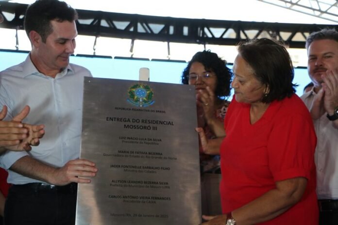 A governadora do Rio Grande do Norte, Fátima Bezerra, participou, nesta quarta-feira (29), da entrega do Residencial Mossoró III, que faz parte do programa Minha Casa, Minha Vida. O evento contou com a presença do ministro das Cidades, Jader Filho, e do prefeito de Mossoró, Allyson Bezerra. O conjunto habitacional é composto por 300 apartamentos e beneficia diretamente cerca de 1.200 pessoas na zona norte do município.